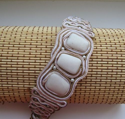 Handgemachtes Armband Beige in Soutache Technik Künstlerisch Steinplattstich