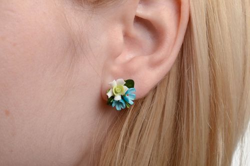Handmade polymer clay earrings plastic earrings with flowers designer jewelry