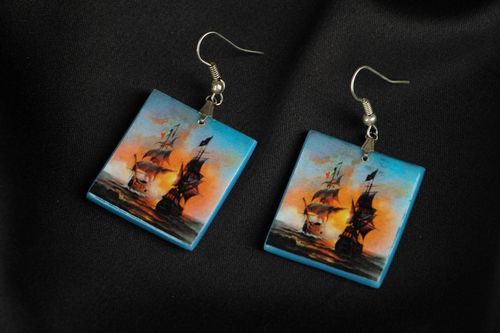Handmade polymer clay earrings plastic jewelry earrings with painting