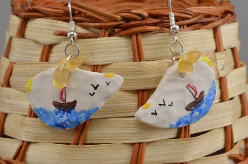 Handmade unique cold porcelain earrings designer bijouterie present for women