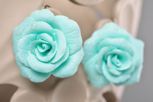 Small handmade womens polymer clay flower stud earrings in the shape of roses