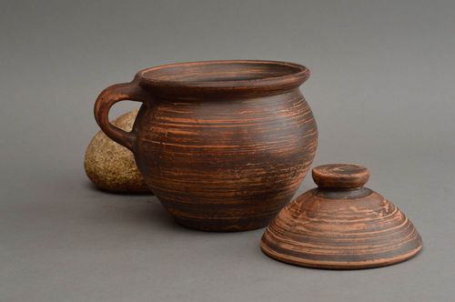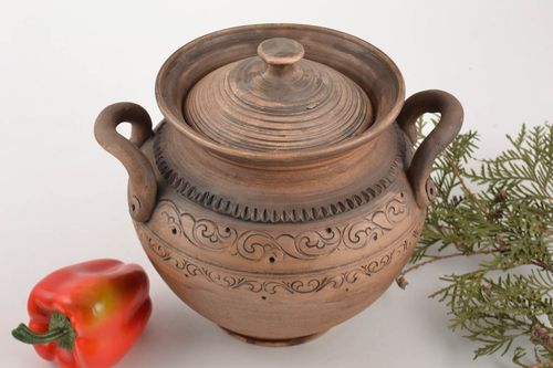 Large beautiful ethnic ceramic handmade pot with lid for baking 3 l eco friendly
