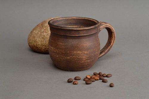 Handmade dark brown clay tea mug with handle 0,6 lb