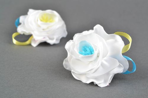 Flower hair accessories set ribbon hair clips textile barrettes 2 pieces