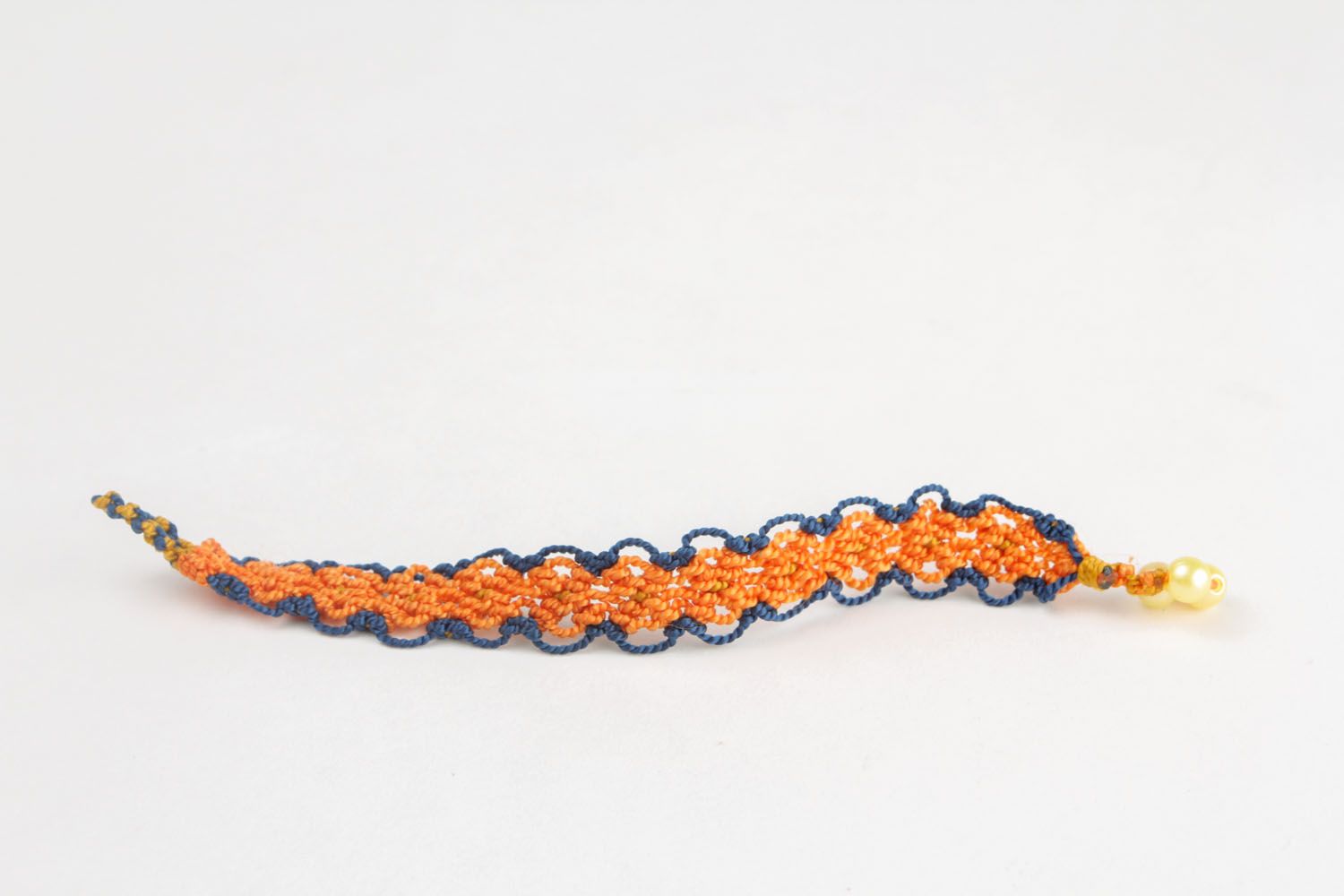 This bracelet is hand woven of synthetic threads using macrame technique. It can be made in any color. Let lovely and unusual jewelry please you every day! Your look will be more gentle and more elegant with it, and your wrists will seem visually thinner.