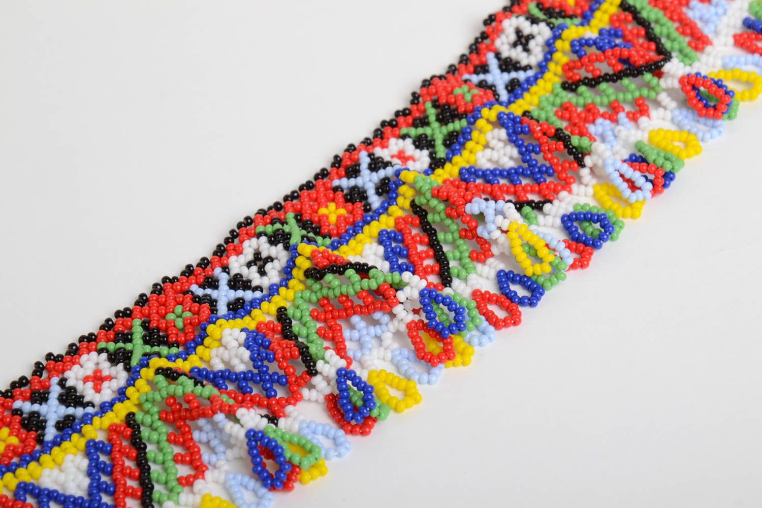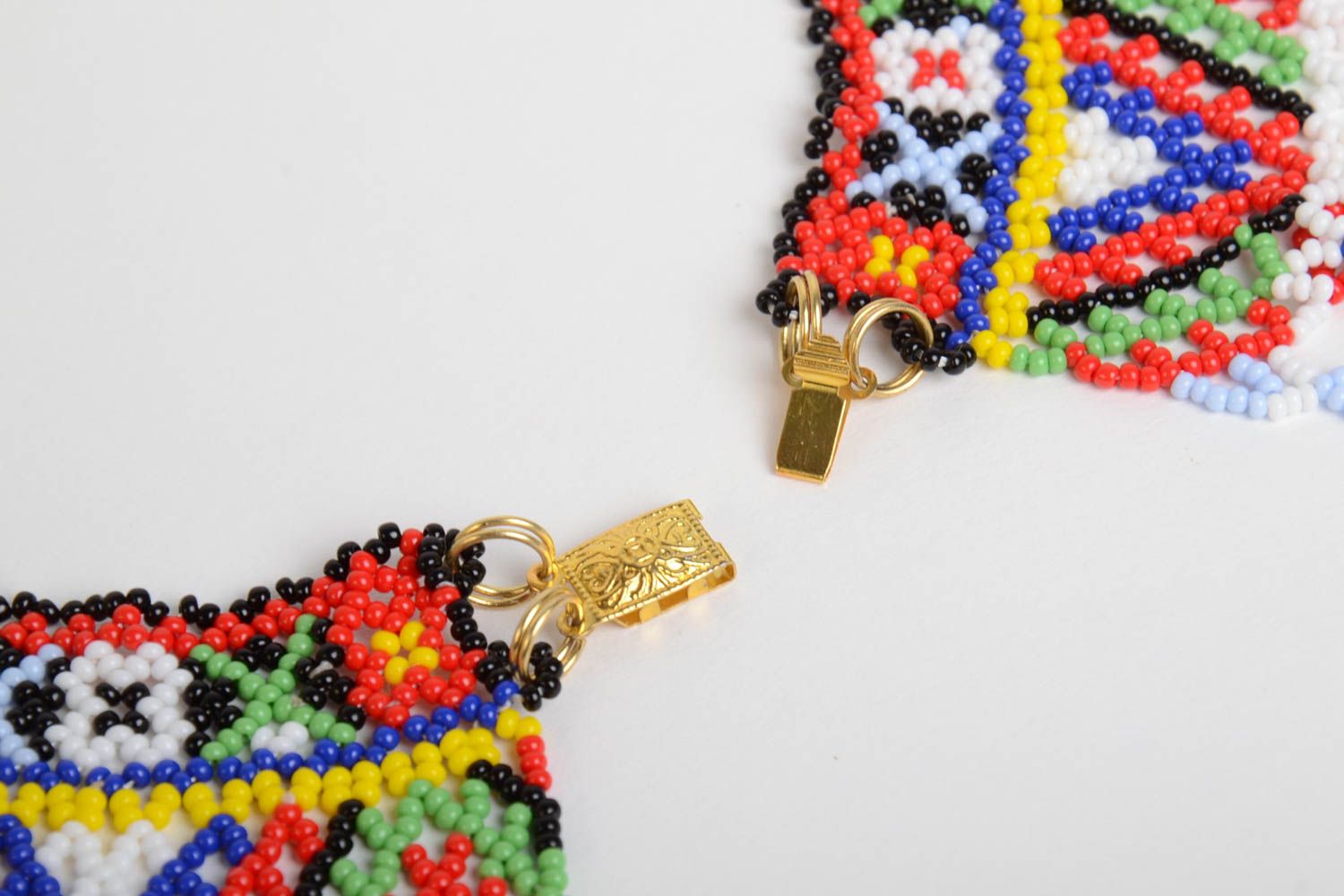 This handmade necklace is created of Czech seed beads and durable thread using openwork weaving technique. It is equipped with a metal fastener. Such beautiful colorful jewelry is perfectly appropriate for creation of a bright attractive look.