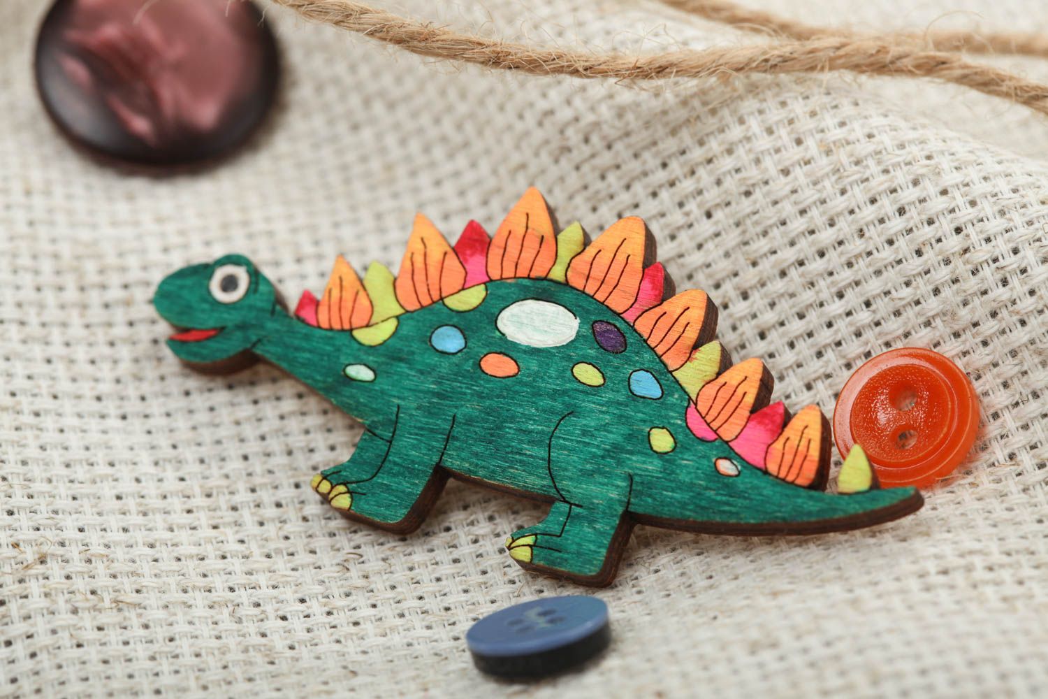 Handmade funny plywood animal brooch Dino painted with acrylics for kids