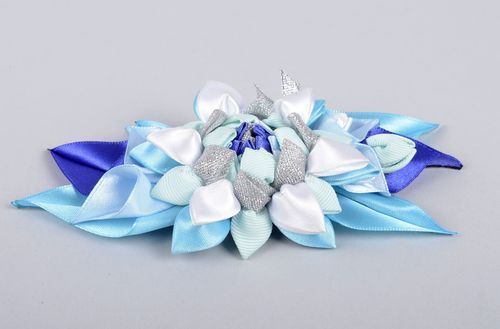 Broche para el pelo artesanal con flores arcilla polimérica y lazo de cinta