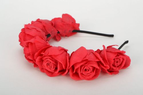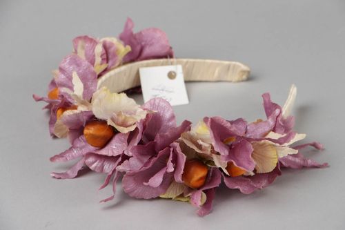 Serre-tête fleurs Accessoire cheveux fille fait main de cuir Cadeau original