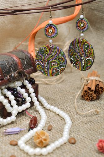Boucles doreilles en pâte polymère rondes multicolores motif indien faites main