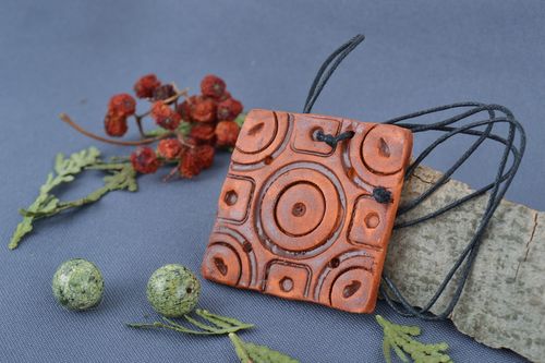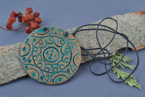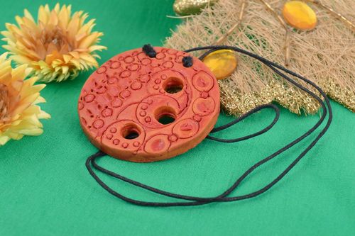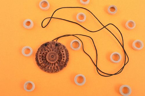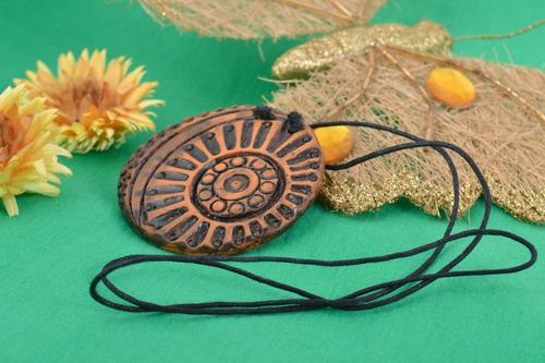 Ciondolo in ceramica naturale fatto a mano pendente etnico con laccio
