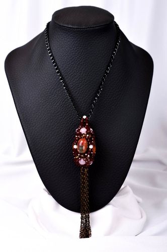 Ciondolo bello fatto a mano di pietre e perline pendente da donna adorabile