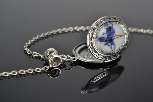 Ciondolo con fiori secchi fatto a mano pendente bello originale da donna