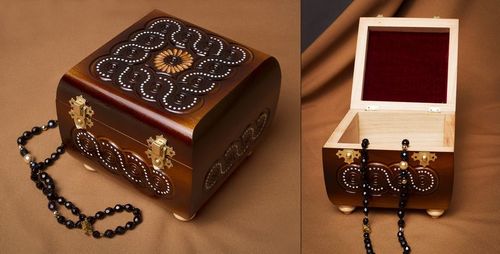 Scatola di legno fatta a mano Cofanetto intarsiato Scrigno con intarsi