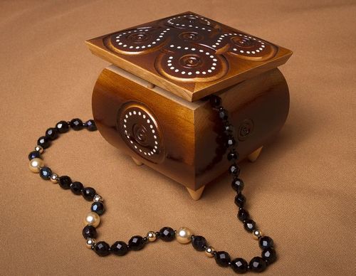 Scrigno intagliato fatto a mano Cofanetto di legno Scatola di legno di gioielli